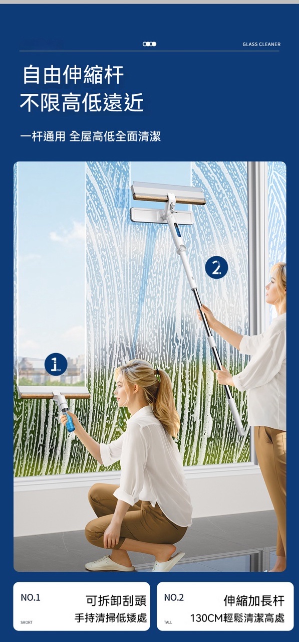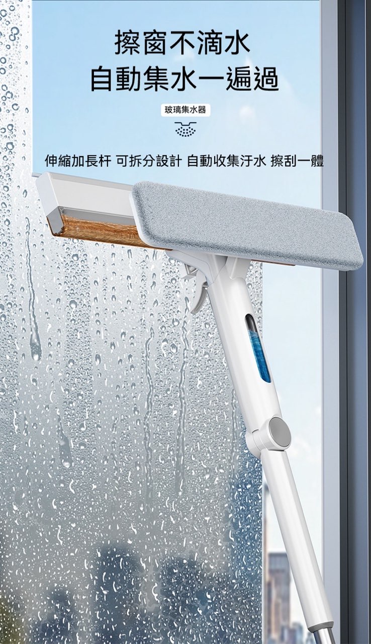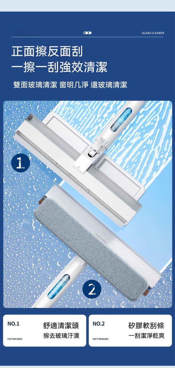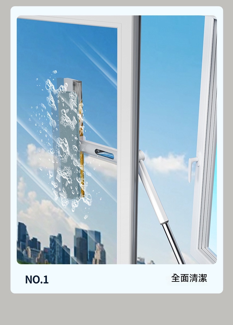 「伸縮雙面擦窗器~」讓你腳踏平地擦透透! 擦外窗像玩命特技?這支「會轉彎的魔法棒」讓你安全擦完摩天大樓~ ✅ 擦刮雙頭設計 泡沫水痕一次推淨 ✅ 360°旋轉關節 鐵窗死角也輕鬆鑽 ✅ 自帶集水槽 髒水不滴落超省心