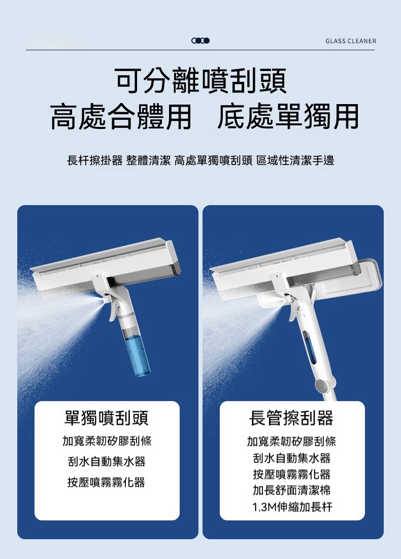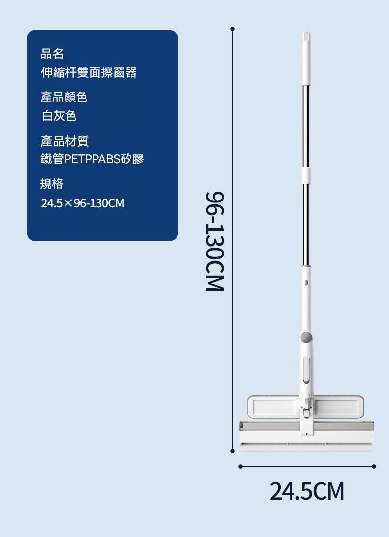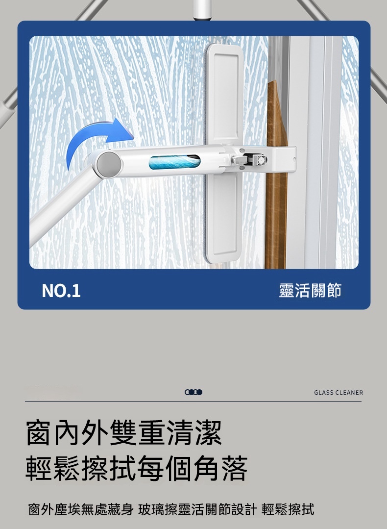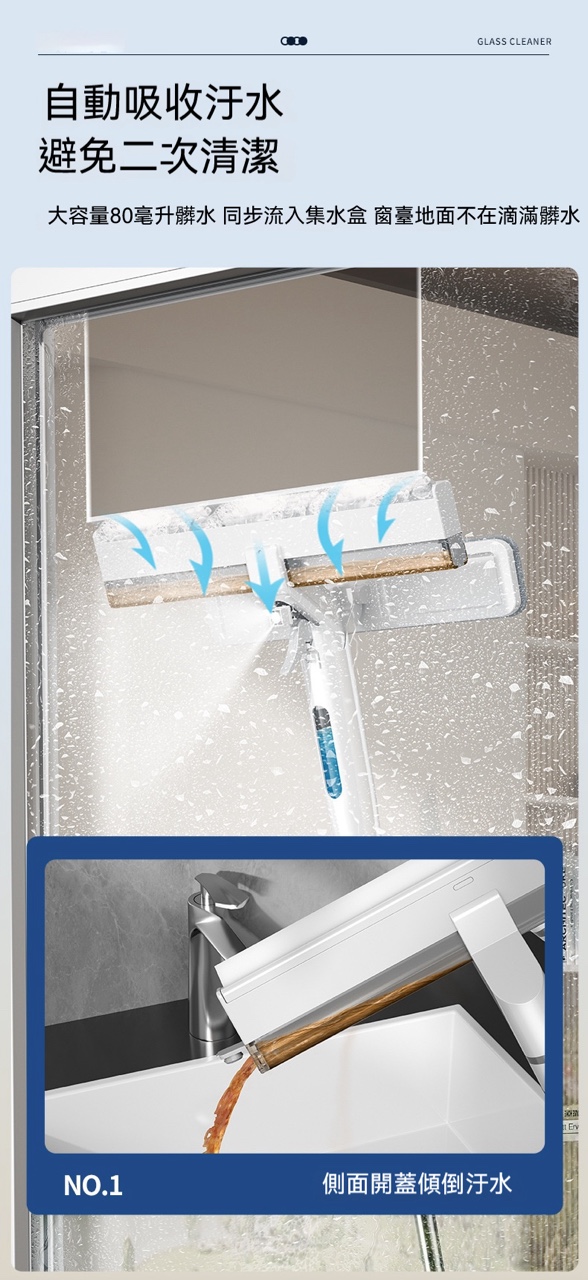 「伸縮雙面擦窗器~」讓你腳踏平地擦透透! 擦外窗像玩命特技?這支「會轉彎的魔法棒」讓你安全擦完摩天大樓~ ✅ 擦刮雙頭設計 泡沫水痕一次推淨 ✅ 360°旋轉關節 鐵窗死角也輕鬆鑽 ✅ 自帶集水槽 髒水不滴落超省心
